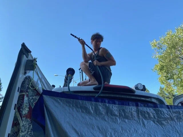 Brooke concludes: Admittedly there’s not a whole lot of coffee drinking going on in bed, and anything I put on this shelf would fall off as soon as we get moving, but part of a successful van build is staying open to possibilities for the space. Who knows, maybe in Season 3 we’ll figure out a function for this shelf that’s totally integral and we’ll wonder how we ever got along without it. Or maybe it’ll always just be a beautiful place to put my Nalgene. That’s good enough for me.