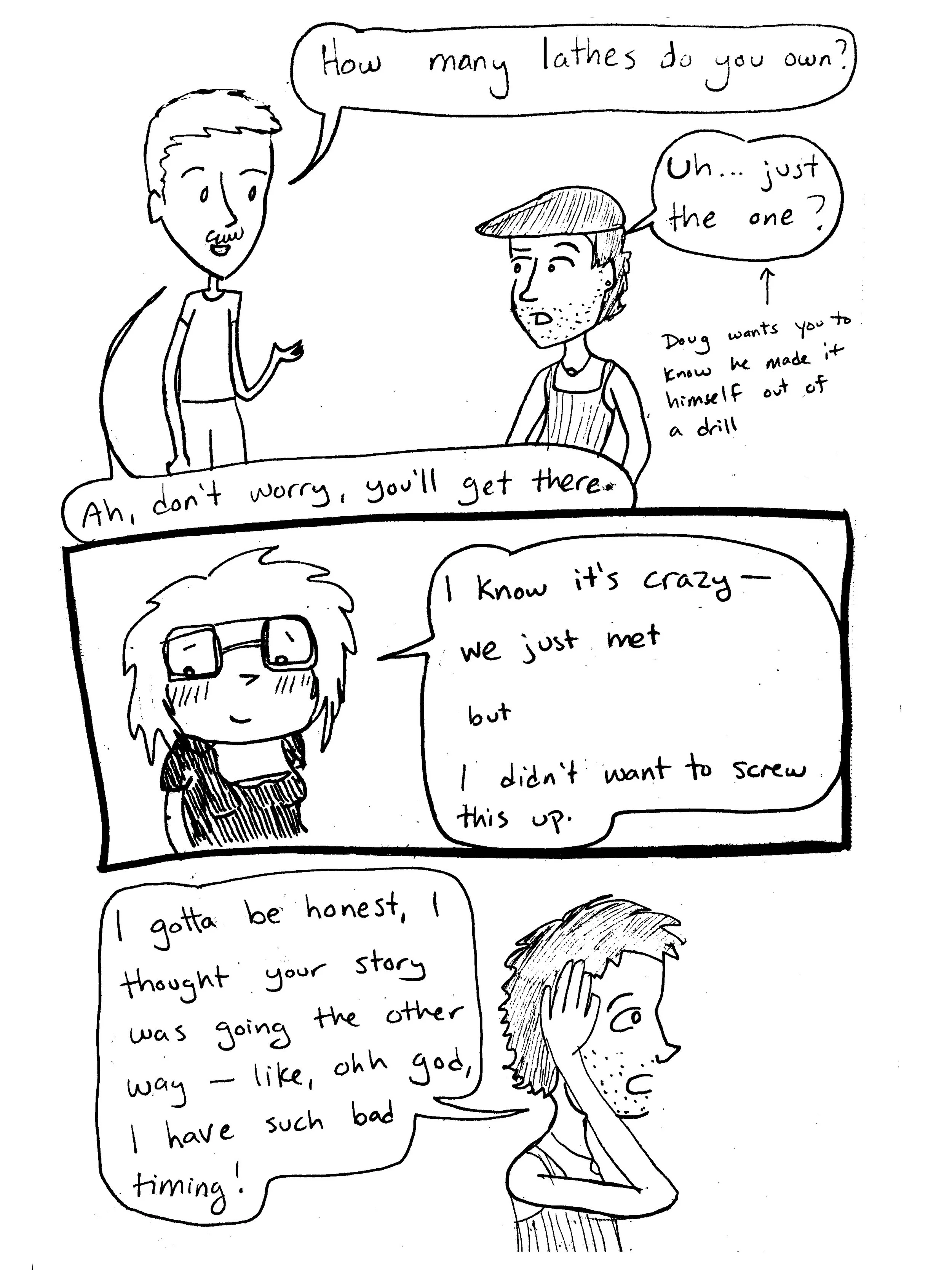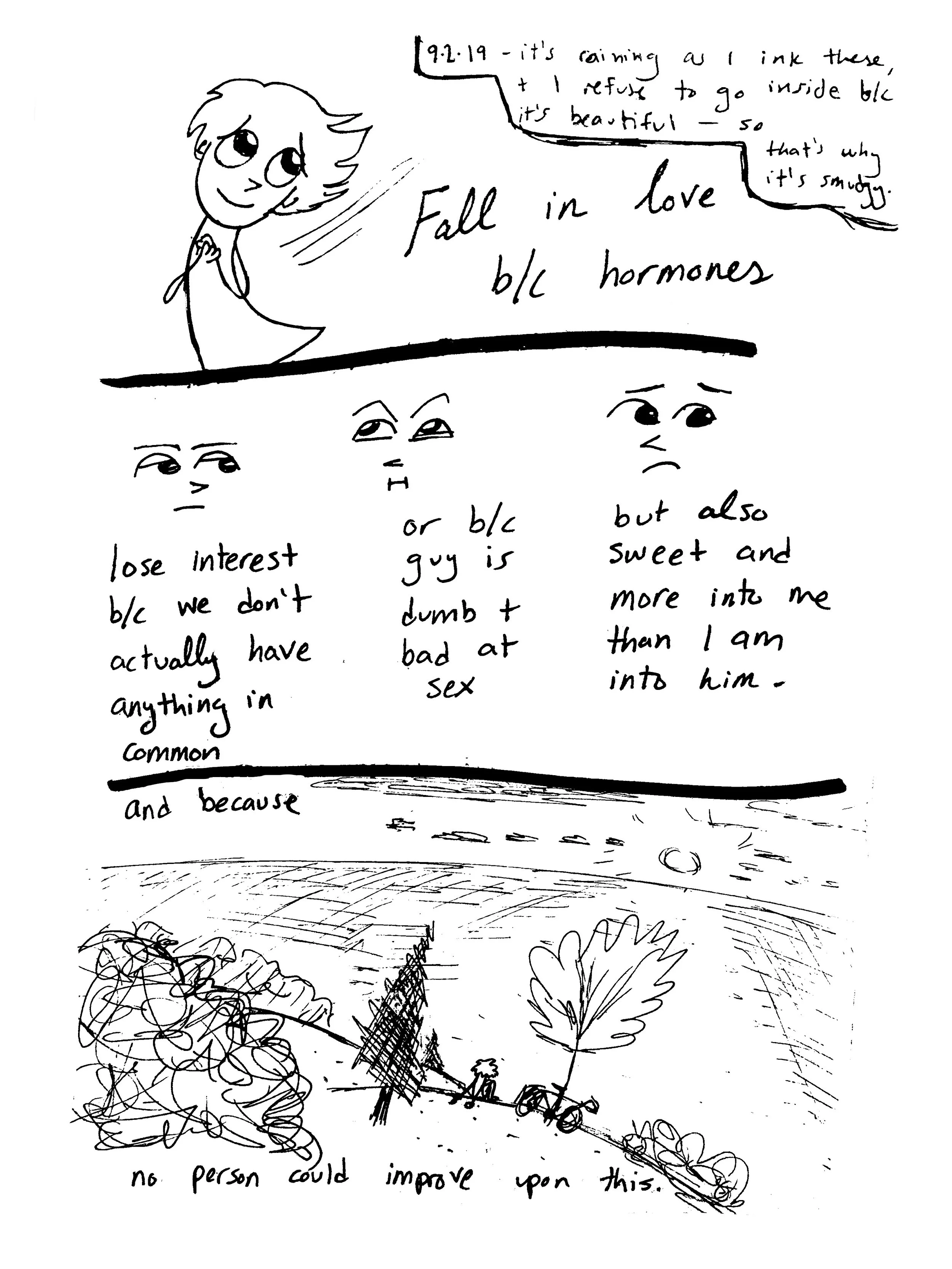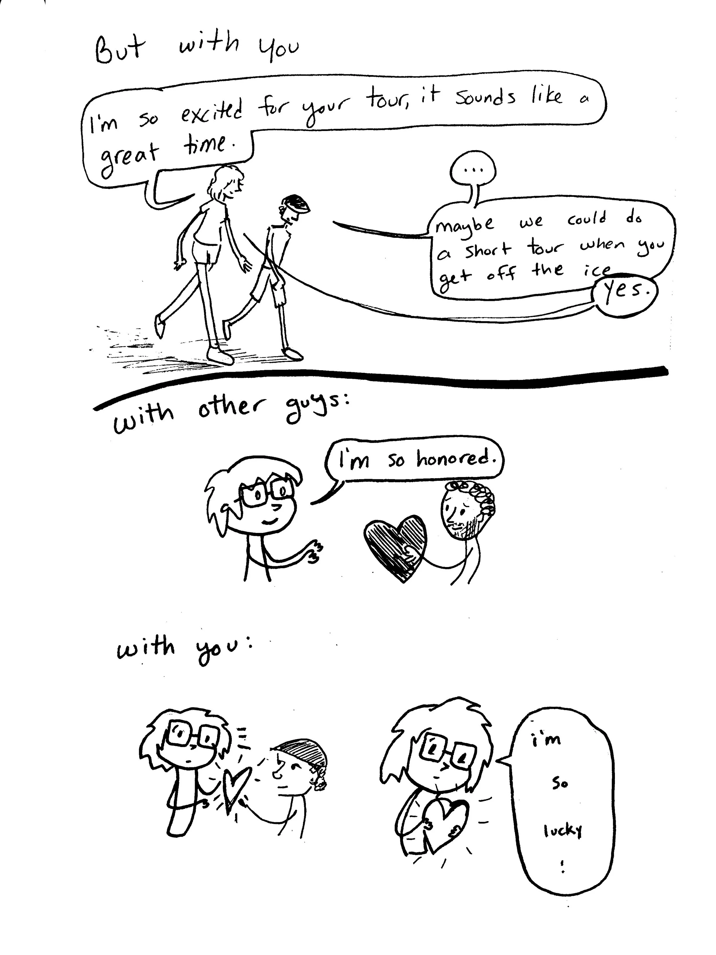 i drew these comics in 2018 and 2019. for context, i’d completed a 5,000-mile solo bike tour across america, singlehandedly created and implemented a program to help send a handful of needy students to college, and just finished a hard season at McMurdo station. i was living in philadelphia for the summer — the first time i’d been living in one normal place (i.e. not a research base in antarctica or a lodge on the denali highway) since ithaca in 2017. i only knew a couple people there, and most of my days were spent writing, doing hot yoga, and going on long bike rides, so i decided to get on Tinder to meet people and have conversations.