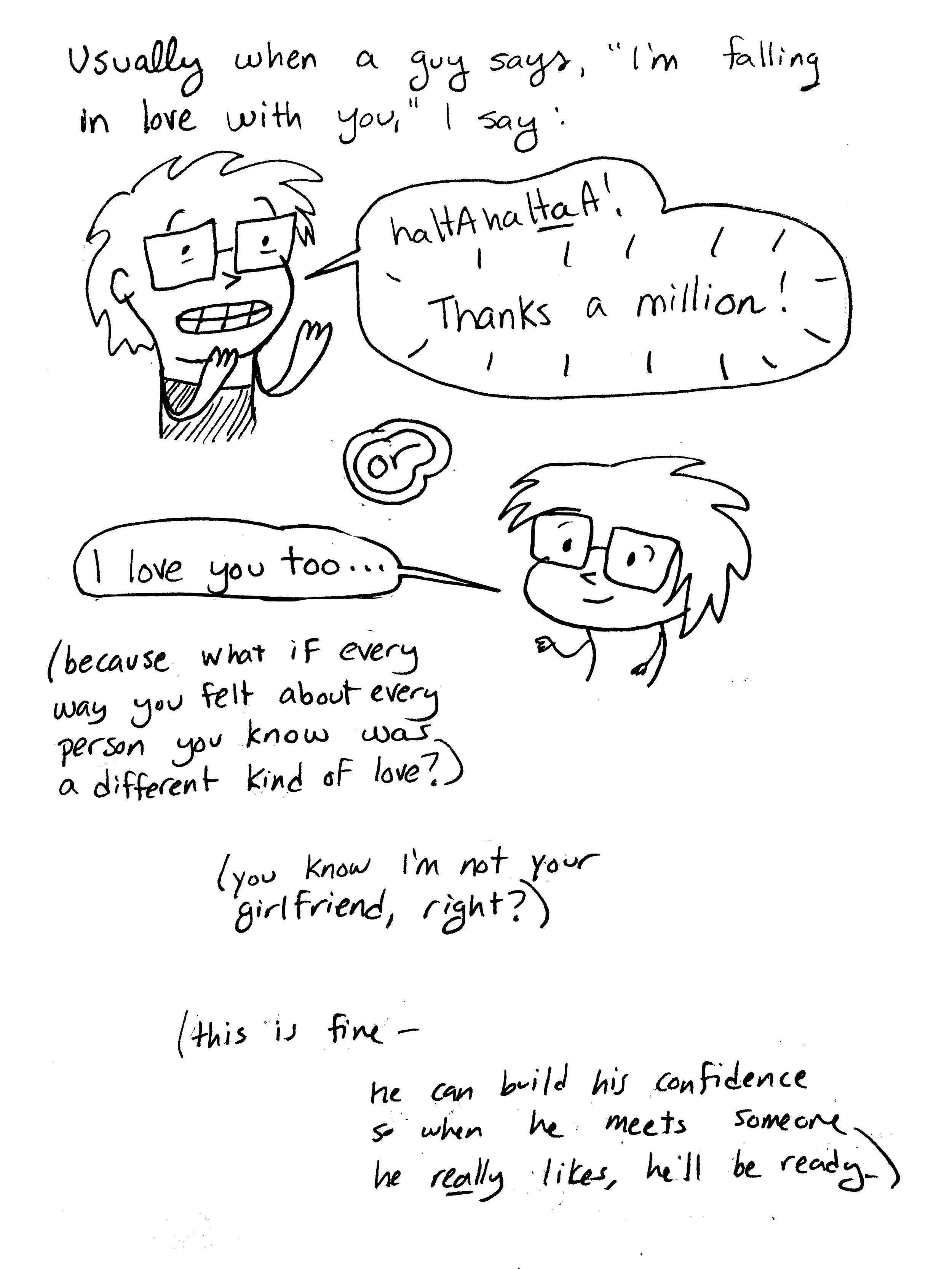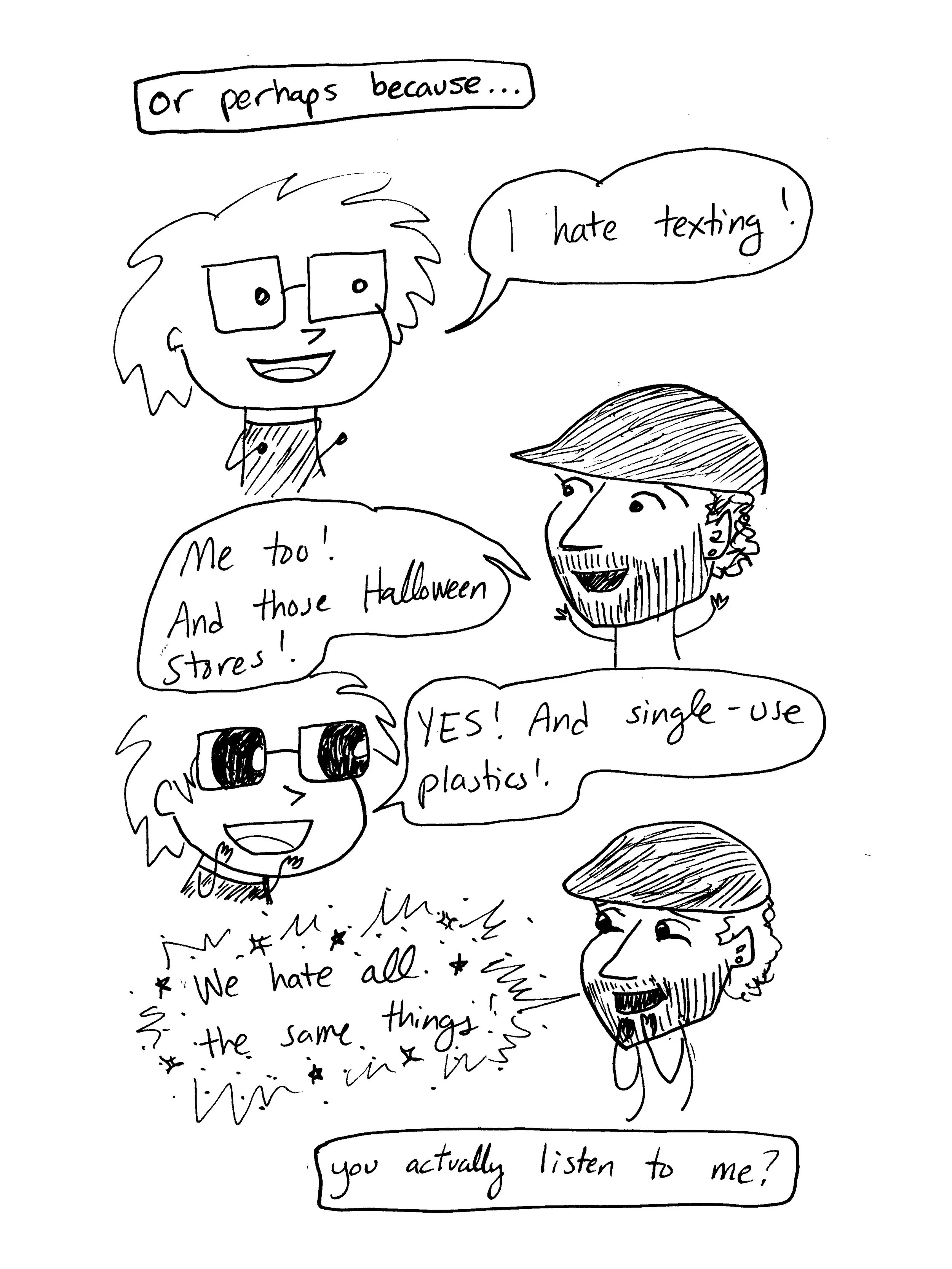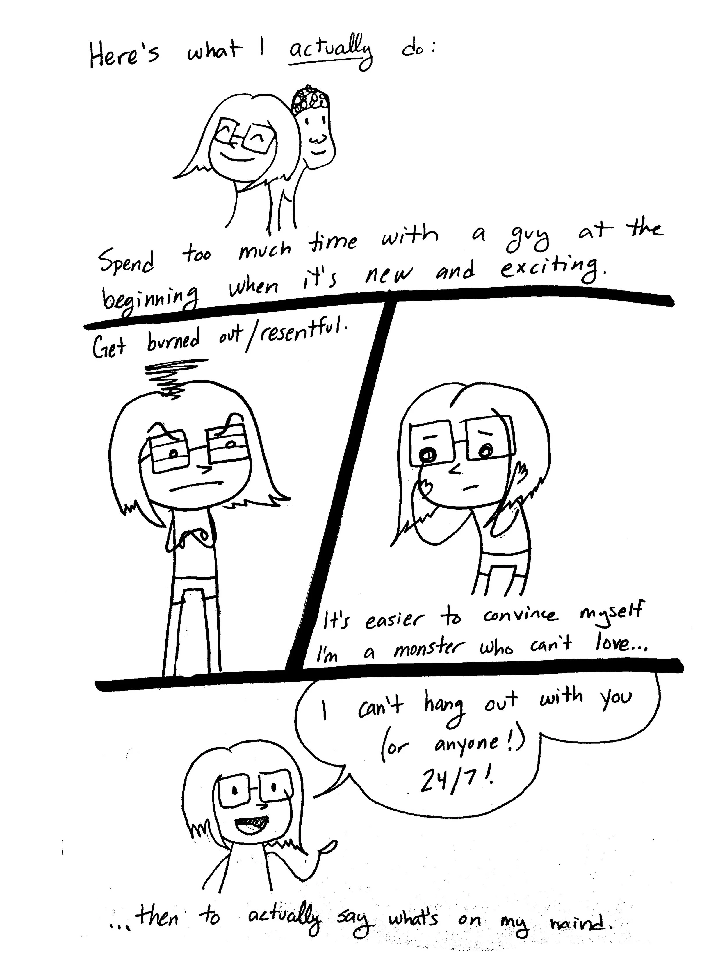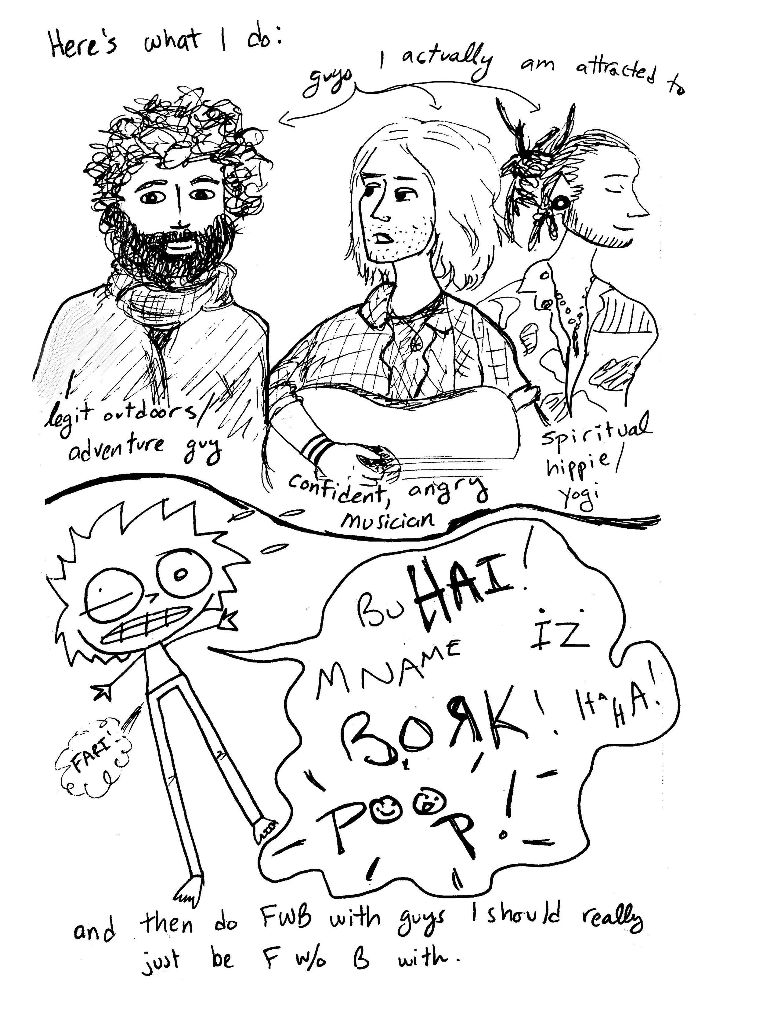 i drew these comics in 2018 and 2019. for context, i’d completed a 5,000-mile solo bike tour across america, singlehandedly created and implemented a program to help send a handful of needy students to college, and just finished a hard season at McMurdo station. i was living in philadelphia for the summer — the first time i’d been living in one normal place (i.e. not a research base in antarctica or a lodge on the denali highway) since ithaca in 2017. i only knew a couple people there, and most of my days were spent writing, doing hot yoga, and going on long bike rides, so i decided to get on Tinder to meet people and have conversations.